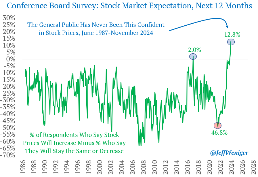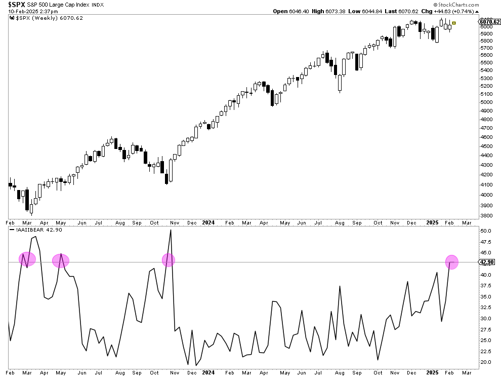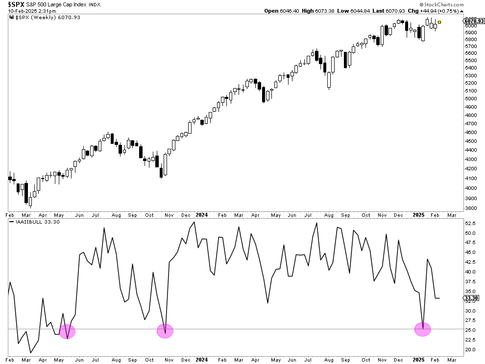 Recientemente, el porcentaje de alcistas en esta encuesta declinó a su punto más bajo en más de un año, hasta niveles que en otros momentos de este mercado alcista han sido cercanos al fin de las correcciones.