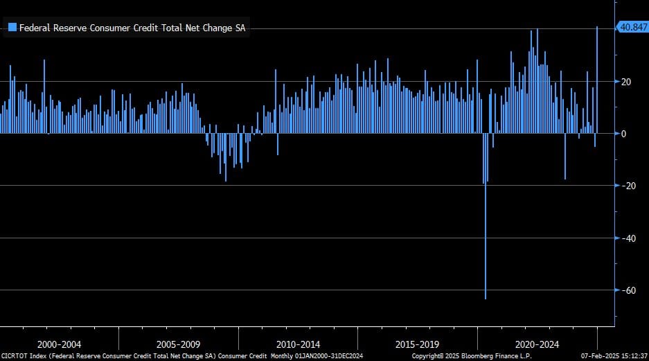 La primera es que el crédito al consumo, después de un "frío" mes de noviembre, repuntó en diciembre hasta su nivel nominal más fuerte de la historia. Típicamente cuando el ciclo económico se está enfriando, se observan al menos varios meses de declive. Pero ver un mes tan fuerte, casi un "petardazo" en el consumo de los hogares, es un signo de vigor.