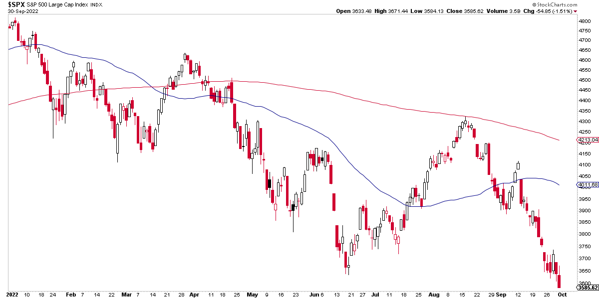 El viernes 30 de septiembre el S&P 500 cerró en los 3.585 puntos, un cierre muy débil de mes y trimestre y que marcaba un nuevo mínimo del actual mercado bajista.