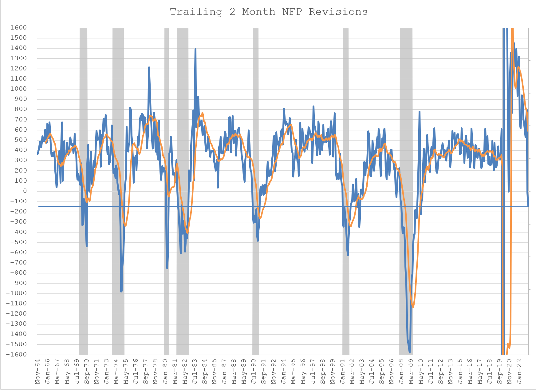 Otra pista importantes son las revisiones de los datos oficiales de empleo. Como casi todo dato macroeconómico, de los datos de empleo primero se publica una figura provisional y luego, en los siguientes meses, se suele ir corrigiendo según van llegando mejor información. En el caso del dato oficial de empleo, las revisiones sufridas en los últimos meses, fuertemente a la baja, son las típicas que se dan cuando se está cerca de una recesión.