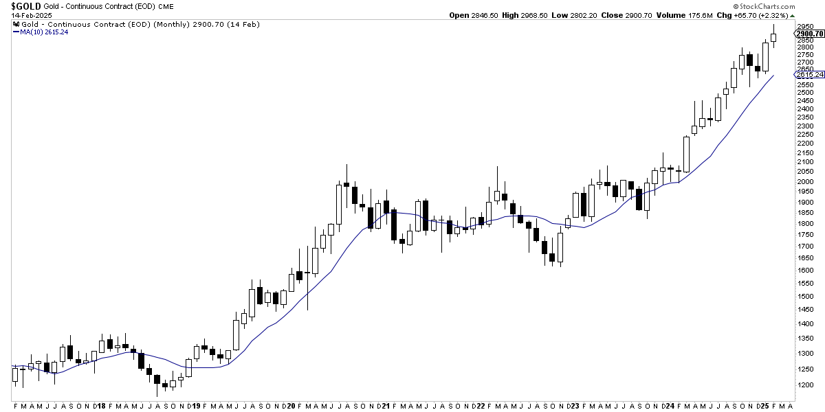 Tan fuerte es ahora mismo la tendencia del Oro, que incluso la noticia de que Estados Unidos quería negociar con Rusia la paz en Ucrania, algo que típicamente haría bajar el Oro porque desinflaría tensiones geopolíticas, ha sido completamente ignorado por el mercado y hoy mismo, a la hora en que publico este análisis, el Oro ha vuelto a marcar un máximo histórico en los 2.936 dólares por onza troy. Tanta fortaleza incluso en el corto plazo ante noticias que deberían ser negativas para este mercado, revela que la tendencia sigue siendo extraordinariamente firme.