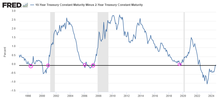 Como siempre, el futuro es incierto y desde estas líneas no se pretende poder conocerlo, pero sí tratamos de utilizar las mejores herramientas disponibles para obtener el mejor análisis posible. Y a la luz de la historia, es cierto que una desinversión de la curva es un signo negativo porque suele adelantar problemas, pero como hemos podido ver, está lejos de ser una herramienta precisa.