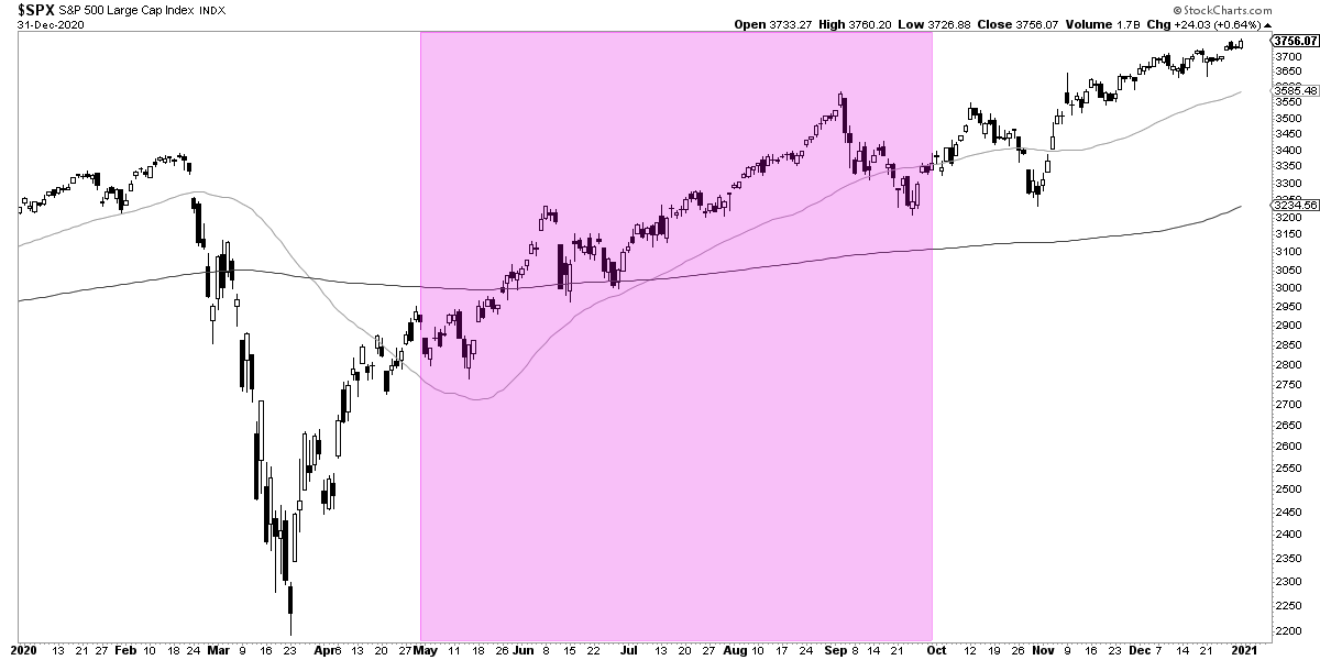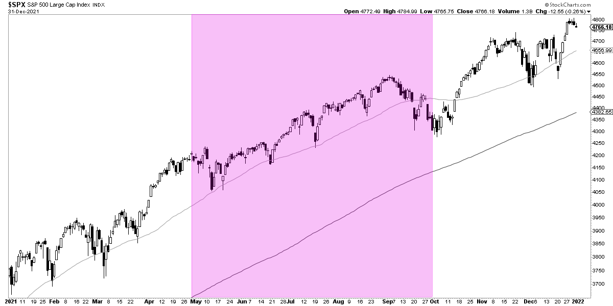 Simplemente, observado en todo su periodo, que es la observación más justa por imparcial, vender en mayo para volver a comprar el 1 de octubre, hubiera sido un error garrafal porque se hubieran perdido subidas del +2,06% anualizado en todo ese periodo.
