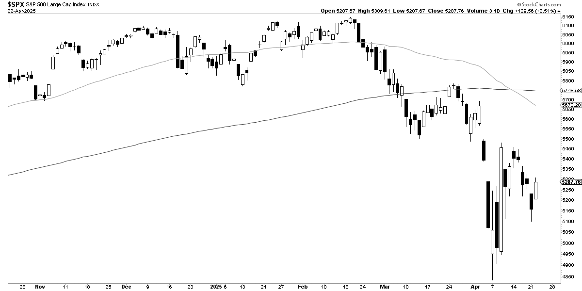 De últimas, el mercado tras sufrir un crac bursátil, el cual por cierto podría argumentarse que no ha entrado en un mercado bajista porque su máxima caída a precios de cierres diarios ha sido del -17,61% en el caso del índice S&P 500, encontró un gran alivio cuando el pasado 9 de abril Trump anunció que reducía todos los aranceles a nivel global, con la excepción de China.
