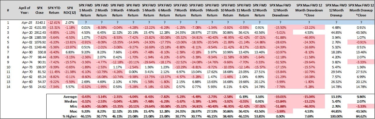 Por ejemplo, el inicio de este año 2025 está entre los peores de la historia. ¿Y qué ha ocurrido históricamente en las bolsas cuando se empieza tan mal en lo que se supone que es estacionalmente la parte más fuerte del año? Si los próximos 12 meses cumplen el patrón histórico, veríamos fuertes pérdidas. La historia muestra que lo que mal empieza, mal acaba y, además, con extraordinaria consistencia.