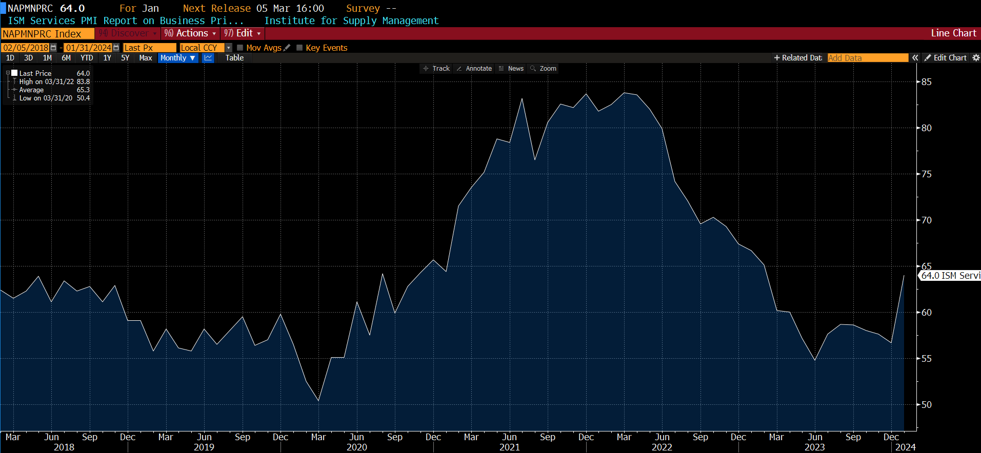 Por supuesto, un punto no hace tendencia y tal vez haya alguna razón puntual totalmente irrelevante que haya provocado ese repunte, pero es un dato a vigilar ya que históricamente este dato ha adelantado muy bien lo que hace la inflación oficial en los siguientes meses. De seguir creciendo sería una situación muy preocupante para los mercados y tiene el riesgo de acabar implosionando la burbuja de las empresas tecnológicas, del growth o de las Magníficas 7, sea como sea que se le quiera llamar.