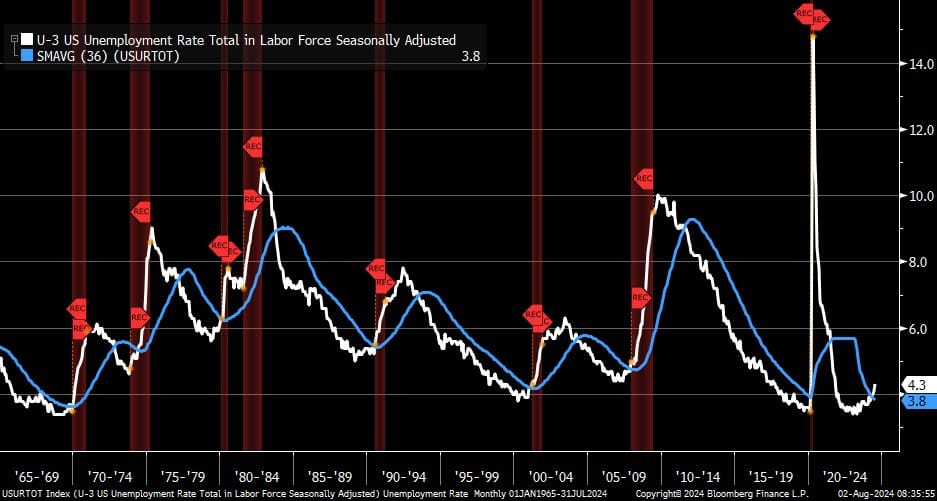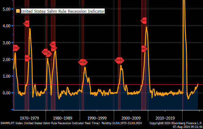 De hecho, hay una cosa llamada Sahm Rule, por la economista que creó el concepto, que se basa en esta idea del momentum económico negativo y según este indicador, la señal de peligro o de recesión ya ha sido activada con la regular lectura de empleo del mes de julio.