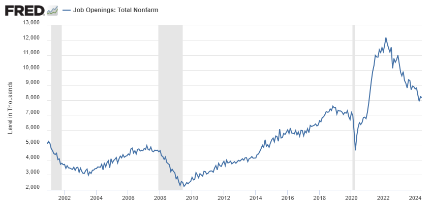 Y en esa misma rueda de prensa Jerome Powell también señaló algo que para muchos pasó inadvertido, la frase "the downside risks to the employment mandate are real now", que traducido libremente al español sería algo como "los riesgos en el mercado laboral son reales desde ahora", en alusión a que el exceso de demanda de fuerza laboral que se había producido en el mercado de trabajo desde la pandemia, ya se había drenado y que ahora se empezaba a correr el riesgo de que el mercado laboral empezara a destruir empleo, algo que forzaría a la FED a bajar sustancialmente los tipos de interés.