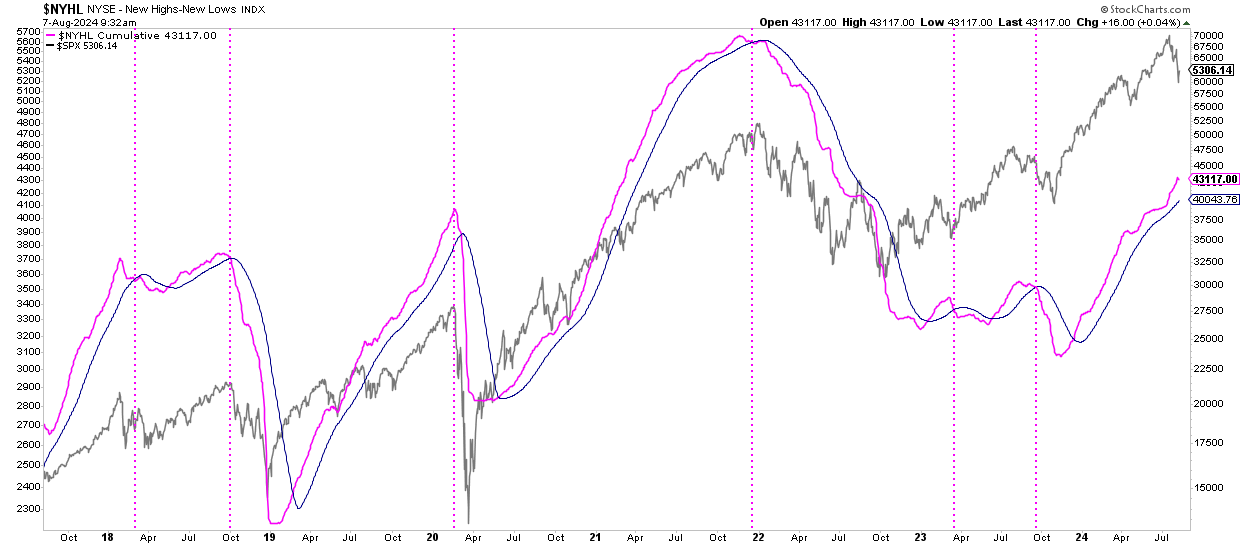 En tercer lugar, porque la amplitud de mercado sigue alcista, al menos en mi forma favorita de observarla en los techos de mercados (o potenciales techos de mercado). A pesar del mini pánico en el S&P 500 (que, recordemos, en magnitud es una corrección normal), la amplitud de mercado sigue siendo positiva y éste es un factor técnico que tengo muy en cuenta.