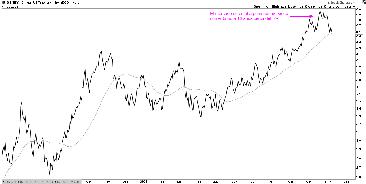 Y, por si fuera poco, por supuesto que las declaraciones de la FED en su última rueda de prensa jugaron un papel relevante, ya que explícitamente señalaron que el mercado había vuelto más restrictivas las condiciones financieras, algo que paradójicamente y por cómo funcionan los mercados, hizo que los tipos de interés bajases y el precio de los bonos subiese.