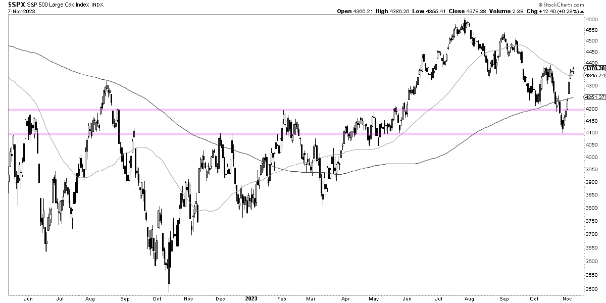 Esto, en primer lugar, me confirma que ese nivel de la zona de los 4.200 puntos del S&P 500 (ahora zona de los 4.100 a 4200 puntos) es un nivel absolutamente clave que separa un escenario de mercado alcista de un escenario bajista. Lo pensaba antes y lo pienso ahora todavía más, vista la reacción del mercado durante la pasada semana. Y esta es una opinión fuerte que tengo sobre el mercado actual.