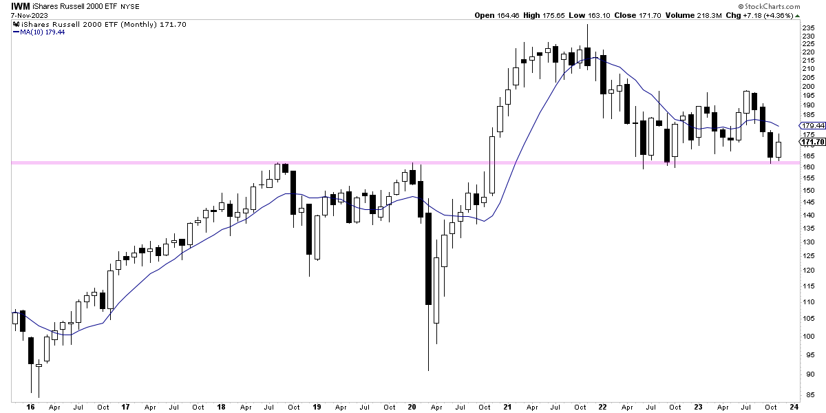 Por ello vale la pena observar directamente índices como el Russell 2000, porque reflejan a la perfección la situación. El rebote que se está produciendo desde finales de octubre se da en un nivel que técnicamente es clave y que está siendo observando por todo el mundo. La zona de soporte actual es la antigua resistencia en los años 2019-2020.