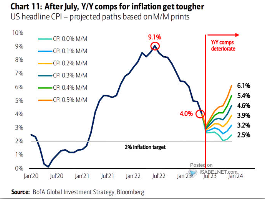 Este brusco cambio visto en el mes de junio, podría significar que la economía se está enfriando y que por tanto la inflación va a subir menos de lo esperado hace unos meses (digo subir menos de lo esperado porque la inflación, en general, siempre crece).