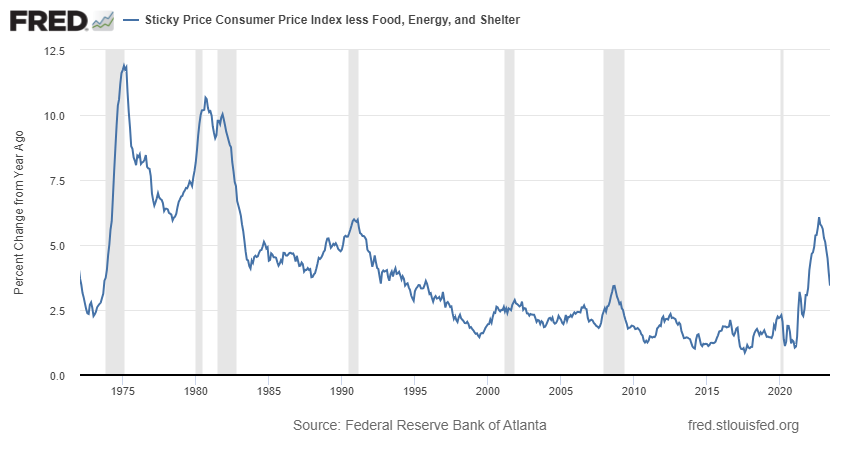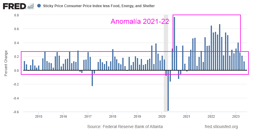 Otro dato que tratamos fue el de la inflación de los componentes menos volátiles (sticky inflation), que son aquellos precios que no son tan volátiles porque incorporan en mayor medida expectativas futuras sobre la inflación, es decir, que no están tan influenciados por los vaivenes del momento.