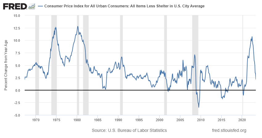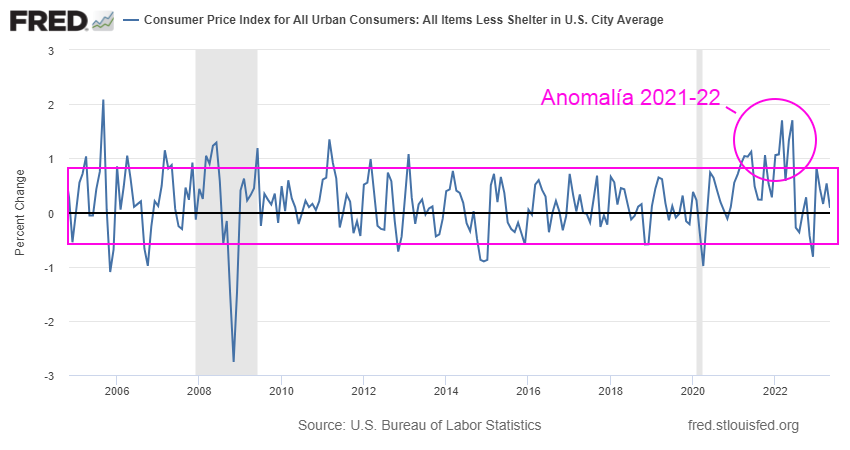 Por ejemplo, una de las series más relevantes que seguimos es la de la inflación excluyendo la inflación inmobiliaria, habida cuenta que es un hecho reconocido por todos que el segmento inmobiliario del cálculo de la inflación general, es tremendamente retrasado con respecto a la realidad.
