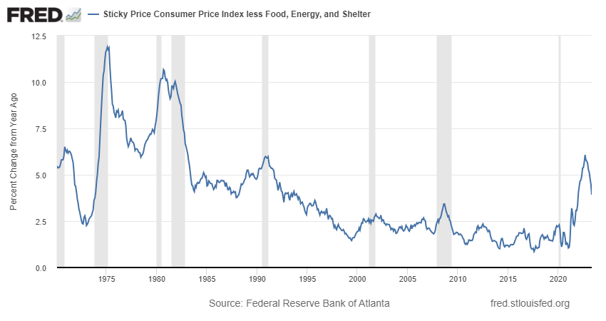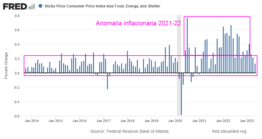 Otro dato que tratamos fue el de la inflación de los componentes menos volátiles (sticky inflation), que son aquellos precios que no son tan volátiles porque incorporan en mayor medida expectativas futuras sobre la inflación, es decir, que no están tan influenciados por los vaivenes del momento.