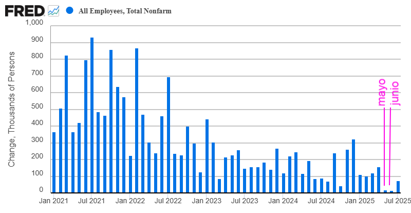 Allí señalé que el mercado laboral es un indicador algo retrasado del ciclo económico-bursátil y que había "altas probabilidades de que la debilidad observada en el mercado laboral durante los meses de abril, mayo y junio, no sean por noticias que se encuentren aún de actualidad y que estarían yendo a peor, sino que probablemente fueron el efecto del impacto que creó el anuncio de aranceles globales por parte del presidente Trump el pasado 2 de abril, algo que se habría dejado sentir en el mercado laboral, sobre todo, durante la primavera", un efecto que ya no sería de importancia toda vez que Trump dejó atrás su política de máximos y junto con su Secretario del Tesoro dio un giro de 180 grados en su política económica, tal y como señalé también en mi análisis al respecto publicado en el mes de mayo.