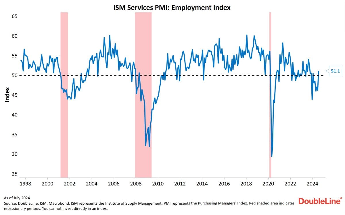 Que saliera reflejada una lectura de 51,1 puntos (expansión del empleo) cuando el mes anterior la lectura fue inferior a 50, fue uno de los factores que estabilizó el mercado tras la caída, porque, al menos por el momento, aleja el fantasma de la recesión.