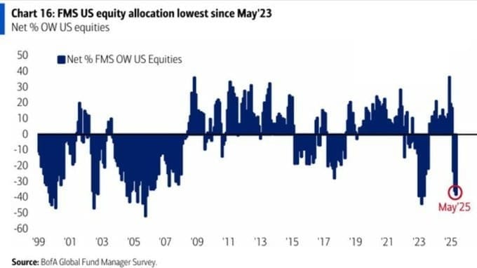 Por ejemplo, los gestores de inversión a nivel global están bastante infraponderados en renta variable estadounidense, algo que en el contexto de una economía expansiva (importante esto), suele ser un principio "contrarian".