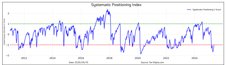 En el mismo sentido, los inversores institucionales sistemáticos, mantienen un posicionamiento históricamente bajo al mercado en estos momentos, lo que sugiere que si no se confirman los problemas macroeconómicos que los mercados han descontado en los últimos meses, hay muchos dinero institucional al margen que podría sumarse a un movimiento alcista.