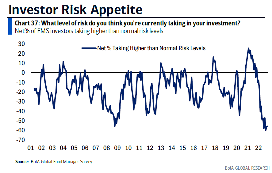 Y, en general, el apetito por el riesgo, es el menor de toda la serie histórica de la encuesta de Bank of America: