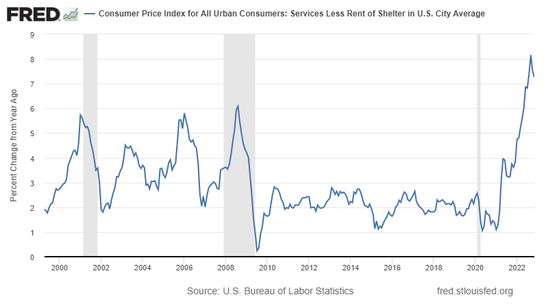 De hecho, desglosó la inflación general en 3 segmentos. En primer lugar la inflación sobre bienes, que reconoció que empieza a estar controlada a medida que se dejan atrás los problemas en la cadena de suministros global.