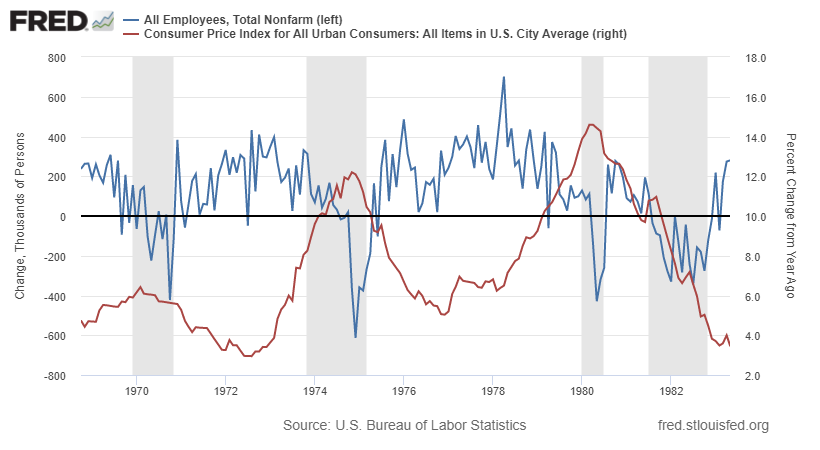 Por ello, aunque ya hayamos visto "el pico de la inflación" y la fase más "hawkish" (restrictiva) empieza a quedar atrás, la FED ha pasado a "modo neutral" porque todavía quiere ver un mayor enfriamiento del mercado laboral. En los años 70s, la pérdida de empleo era algo que se daba muy al final del ciclo contractivo, justo después de que se produjera el techo de la inflación.