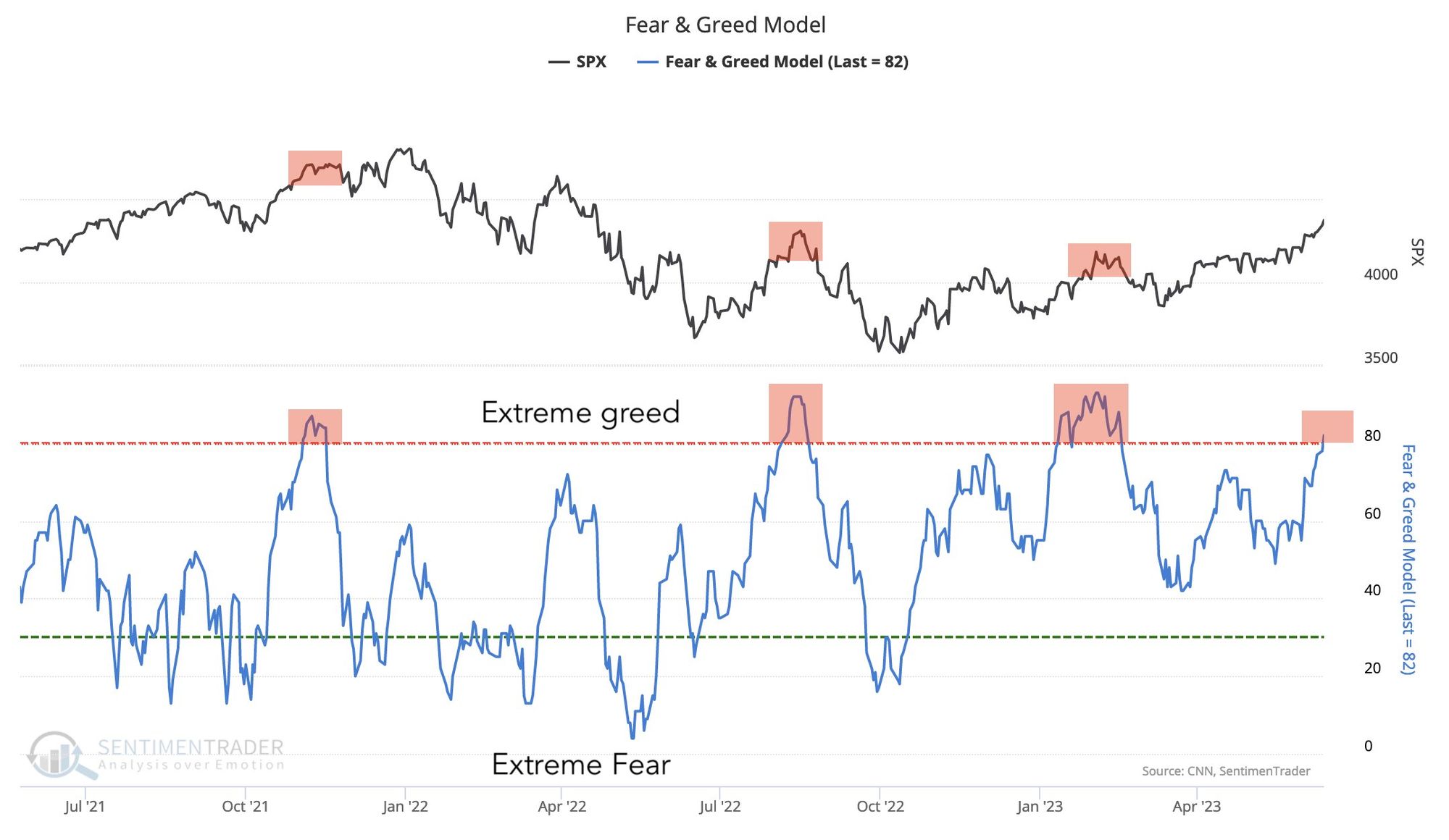 Lo cierto es que esto, en tiempo real, es casi imposible porque realmente las correcciones llegan por cambios rápidos e imprevisibles en el sentimiento inversor de muy corto plazo, para lo cual realmente no hay ningún tipo de alerta previa. Lo que viendo un gráfico histórico parece fácil, en realidad es muy complejo, porque nunca se sabe si una corrección llega al comienzo de una situación de sobrecompra o después de semanas o meses estando el mercado sobrecomprado.