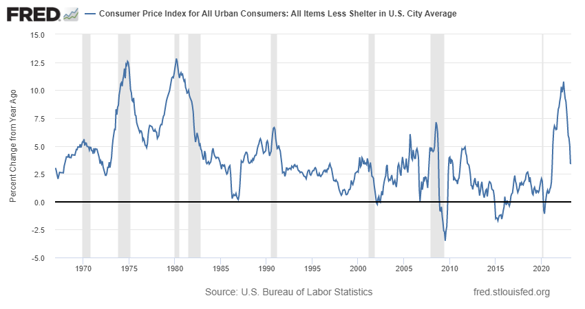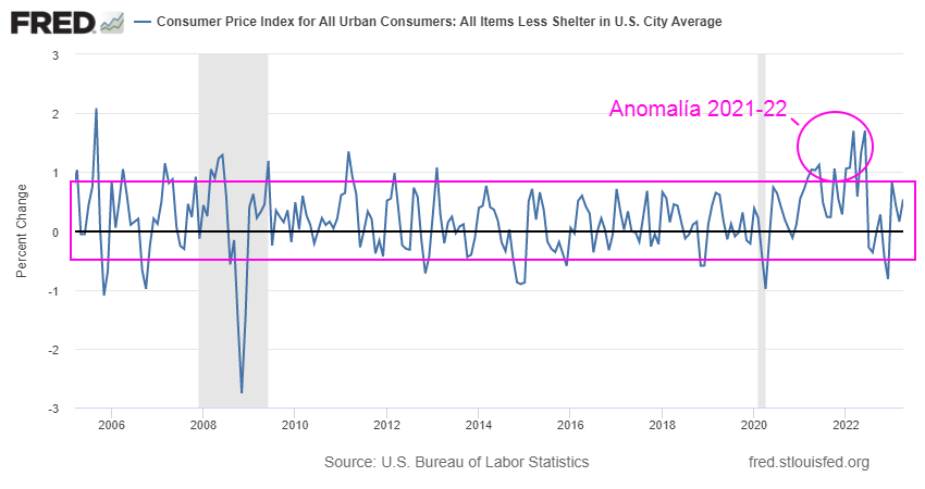 Por ejemplo, una de las series más relevantes que seguimos es la de la inflación excluyendo la inflación inmobiliaria, habida cuenta que es un hecho reconocido por todos que el segmento inmobiliario del cálculo de la inflación general es tremendamente retrasado con respecto a la realidad.