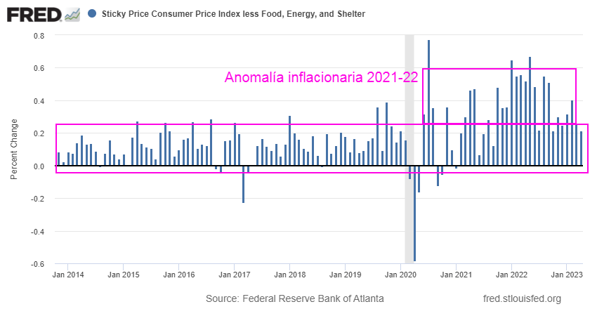 Otro dato que tratamos fue el de la inflación de los componentes menos volátiles (sticky inflation), que son aquellos precios que no son tan volátiles porque incorporan en mayor medida expectativas futuras sobre la inflación, es decir, que no están tan influenciados por los vaivenes del momento.