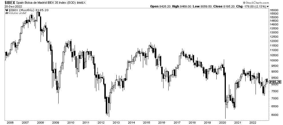 15 años perdiendo y lo natural es decir que el Ibex 35 es una caca. Para muchos inversores, especialmente los españoles que tenemos un espirítu ultra crítico con nuestro propio país, esto es un reflejo de la degeneración político-económica en la que estamos envueltos.